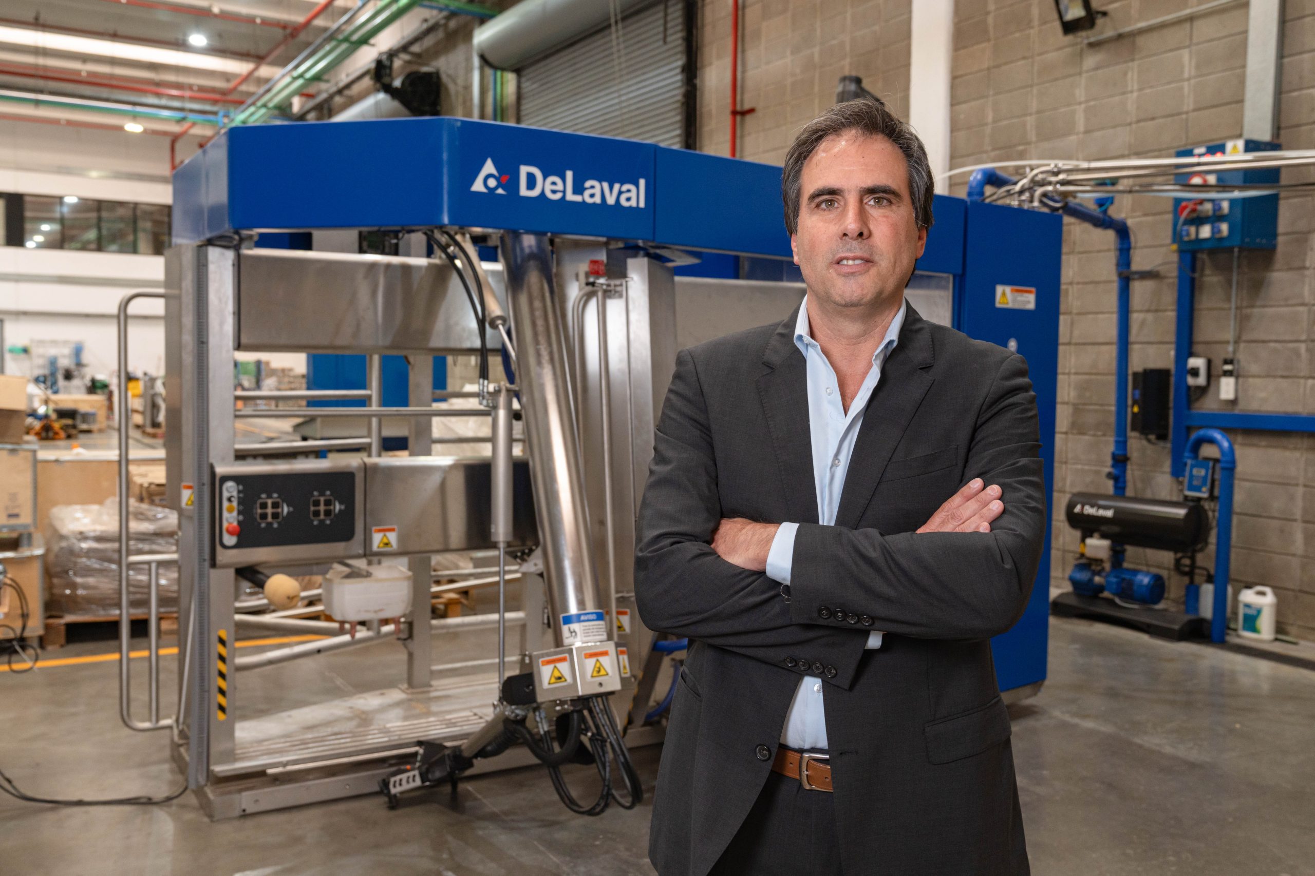 Ezequiel Cabona ingresó a DeLaval hace 27 años. Su vínculo con el mundo lechero viene de familia. Su padre estaba muy ligado al sector, y cuando Ezequiel terminó la facultad, lo fueron a buscar. A los pocos meses de trabajar en la empresa, le propusieron ir a Suecia, a la casa matriz, donde se formó en sistemas de rotación integral, conocidos como “tambos rotativos”.